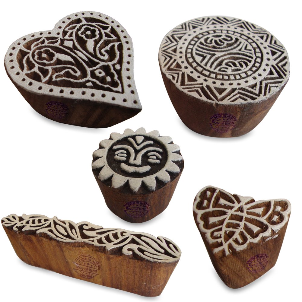 Buy Wooden Stamps for Block Printing on fabric, textile, clay, pottery, henna tattoo, paper from Royal Kraft. Wooden printing stamps are wonderful tools for adding intricate designs to various surfaces. When selecting wooden printing stamps, consider the intricacy of your design needs, the quality of the wood, and the size of the stamp. Hand-carved stamps might offer an authentic, artisanal touch, consistency in the print.
