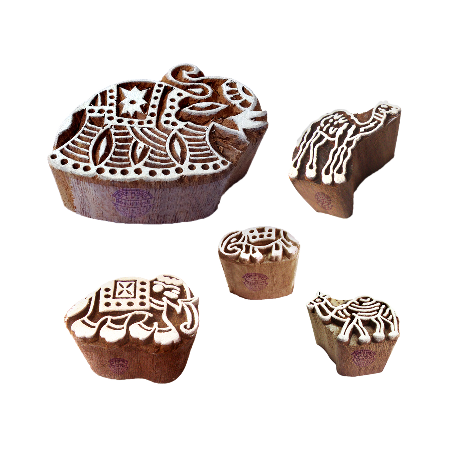 Paper Print Stamps Urban Elephant Camel Pattern Wood Blocks (Set of 5)