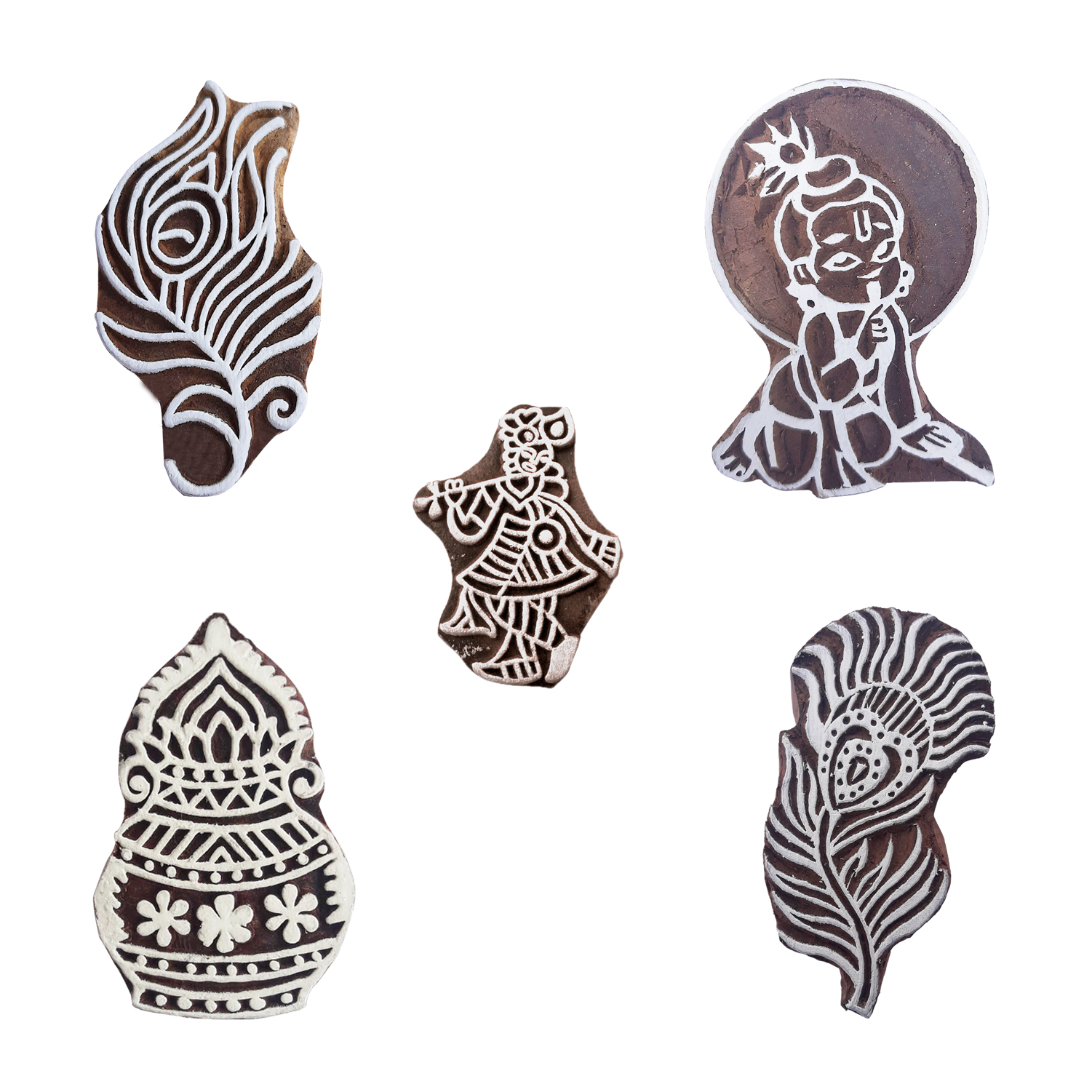 Royal Kraft Krishna Wooden Printing Stamps (Set of 5)