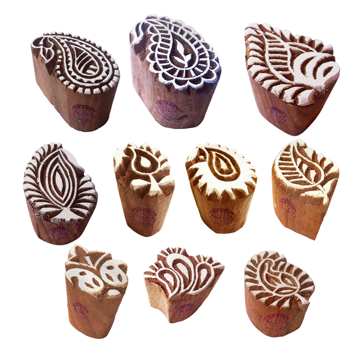 Paper Printing Stamps Designer Small Paisley Design Wood Blocks (Set of 10)